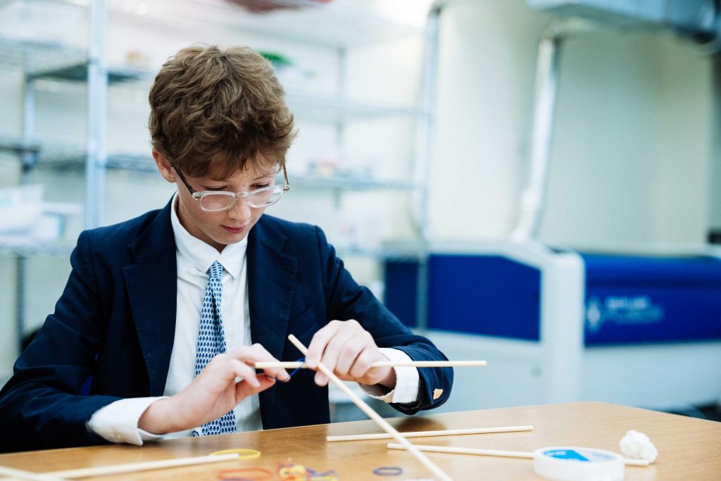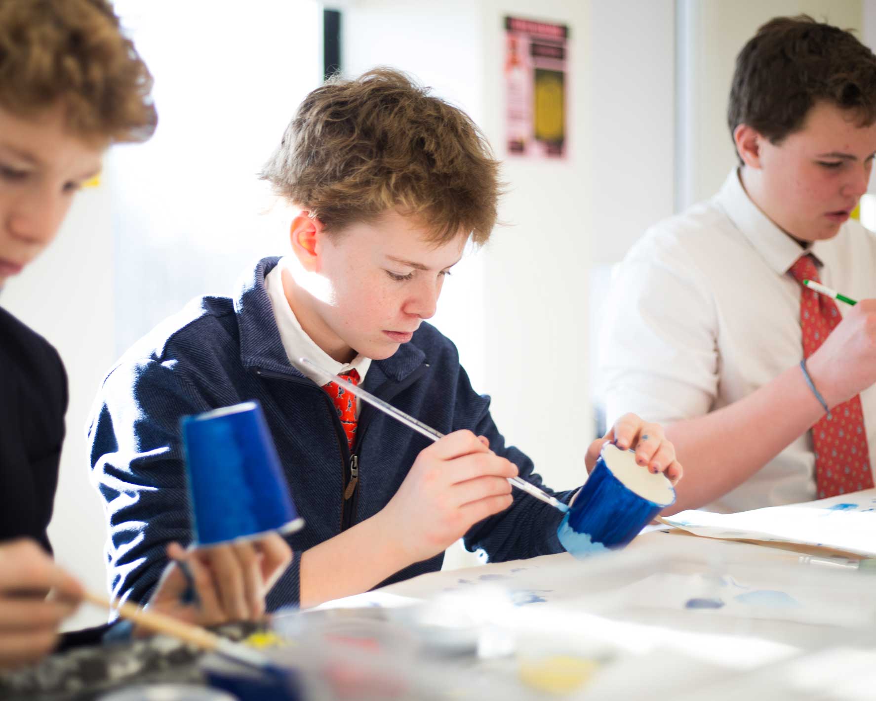 The Middle School visual arts program begins with experimentation and discovery. Boys first explore materials and techniques, while learning the seven elements of art: line, color, shape, value, form, texture and space. As students progress, they focus more deeply on abstract concepts and complete substantial projects that require craftsmanship, creativity, and originality. The program prepares boys for the individualized and rigorous Upper School visual arts curriculum.
