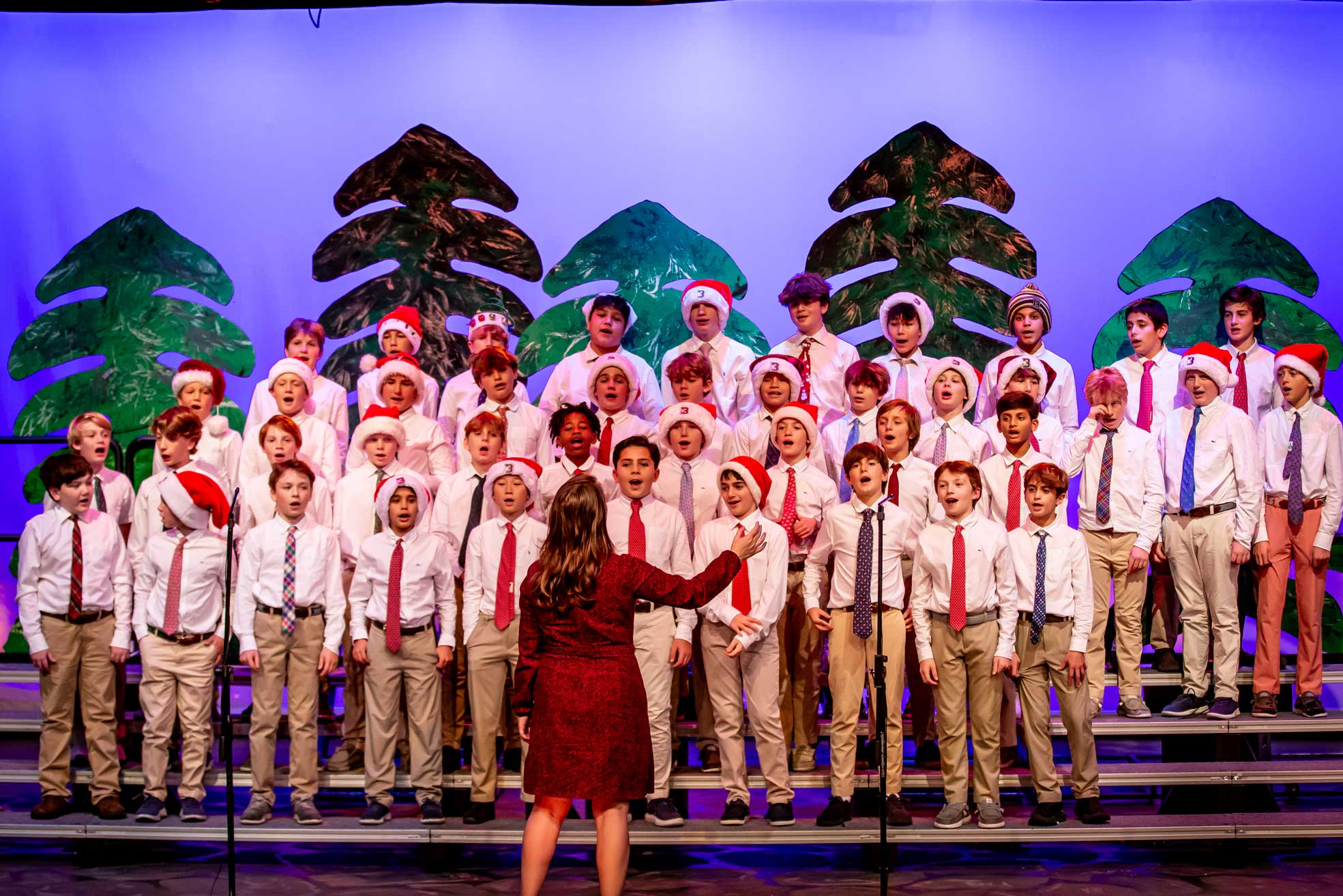 In grade five, Chorus is part of the weekly curriculum. Boys learn healthy voice use and explore repertoire from various styles, languages, and cultures. They perform in the holiday concert and a joint spring band-choral concert. By grade six, Chorus becomes an elective, further developing students’ musical understanding through rounds, partner songs, and two-part harmony. Boys also learn more about vocal production to navigate their changing voices. In grades seven and eight, Chorus members gain greater musicianship, recognizing rhythmic and melodic phrases and applying advanced singing techniques to sustain sound through longer phrases.